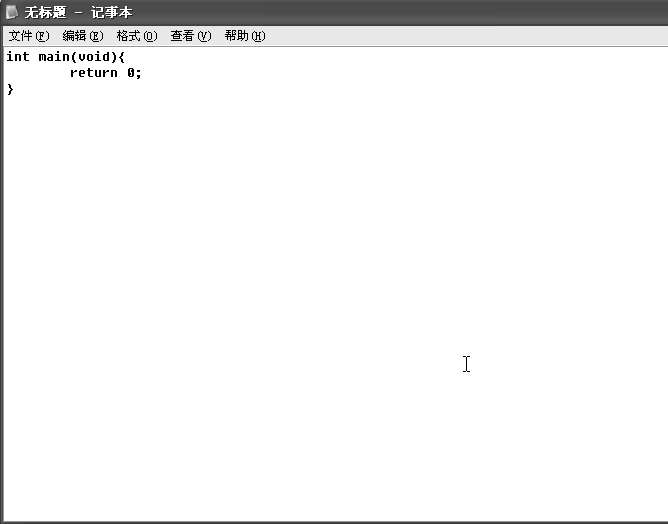 首先请打开文本编辑器,向里面输入一个空的main函数,如图1-11所示。