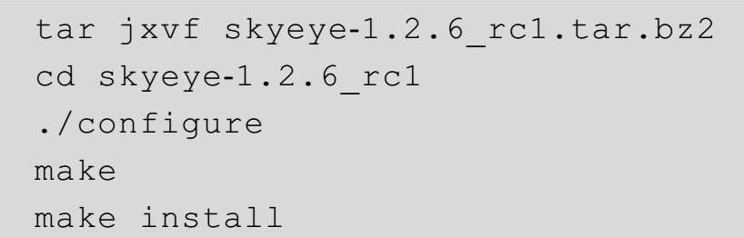 SkyEye的安装不需要多说,只需要从官方网站上下载SkyEye源代码,然后复制到本地文件夹中,并在命令行中输入相应命令即可。如果以1.2.6_rc1版本为例,那么安装命令如下。
