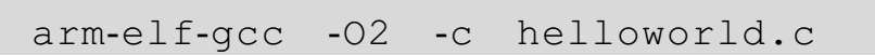 在命令2-1运行之后,一个名为“helloworld.o”的文件便生成了。接下来需要运行链接工具,用该目标文件来生成一个ELF格式的可执行程序。