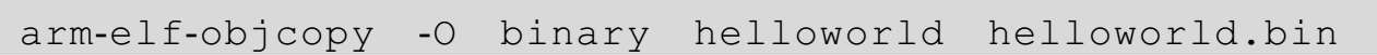 此时,helloworld程序虽然已经生成,但它仍然不能拿来直接加载到硬件环境里去运行,我们还必须使用如下命令生成一个只包含程序机器码的二进制文件。
