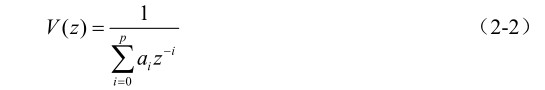式中,a 0 =1,a i 为实数。这里,把截面积连续变化的声管近似为p段短声管的串联,每段短声管的截面积是不变的,p称为这个全极点滤波器的阶。显然,p值取得越大,模型的传输函数与声道实际传输函数的吻合程度就越高。一般地,对大多数实际应用而言,p值取8~12。若p取偶数,一般有p/2对共轭极点,极点的频率分别与语音的各个共振峰相对应。