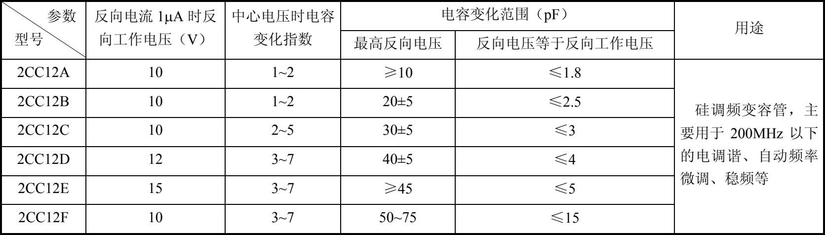 表 1-12 部分 2CC12 型变容二极管的主要参数