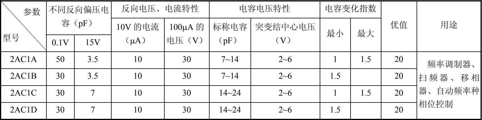 表 1-10 部分 2AC1 型变容二极管的主要参数表