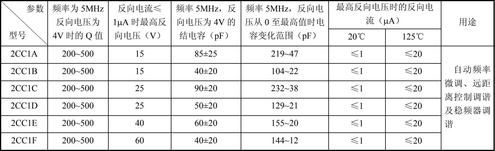 表 1-11 部分 2CC1 型变容二极管的主要参数表