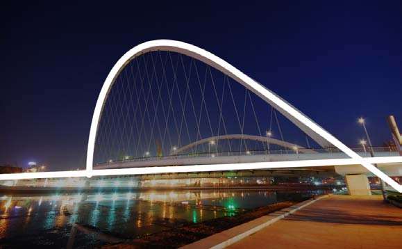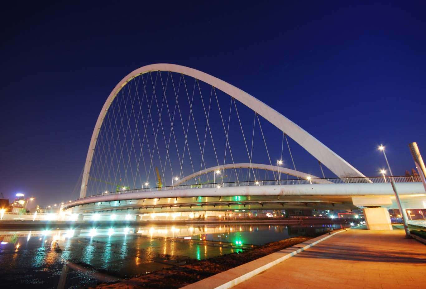 ▲ 天津海河大沽桥夜景。“日月双辉”的巨型双拱设计,在全世界也是独一无二的,壮观新颖的建筑形式,成为了天津另外一个标志性建筑,拍摄这种桥梁,注意在画面中适当留白以免显得太满