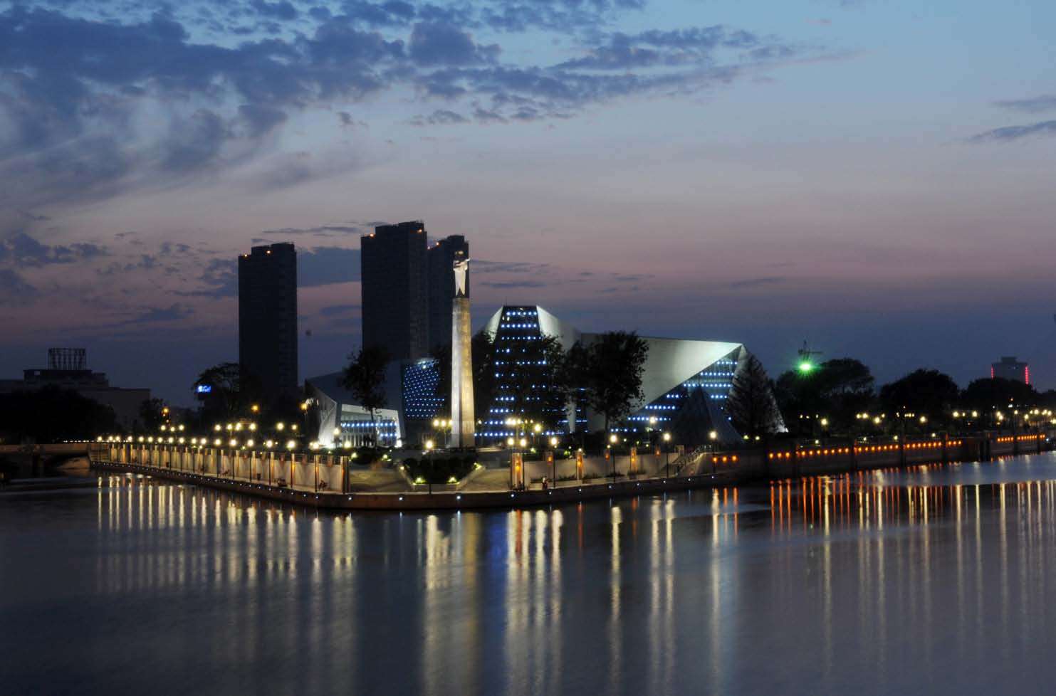 ▲ 天津眼旁边的楼群。这一带集中的现代化建筑,成为了展示天津现代化大都市一面的地方。拍摄夜景时,结合水面的光影拍摄,光影效果更加突出。如果能有机会登上“天津眼”高处俯拍,更能得到完美大气的全景照片