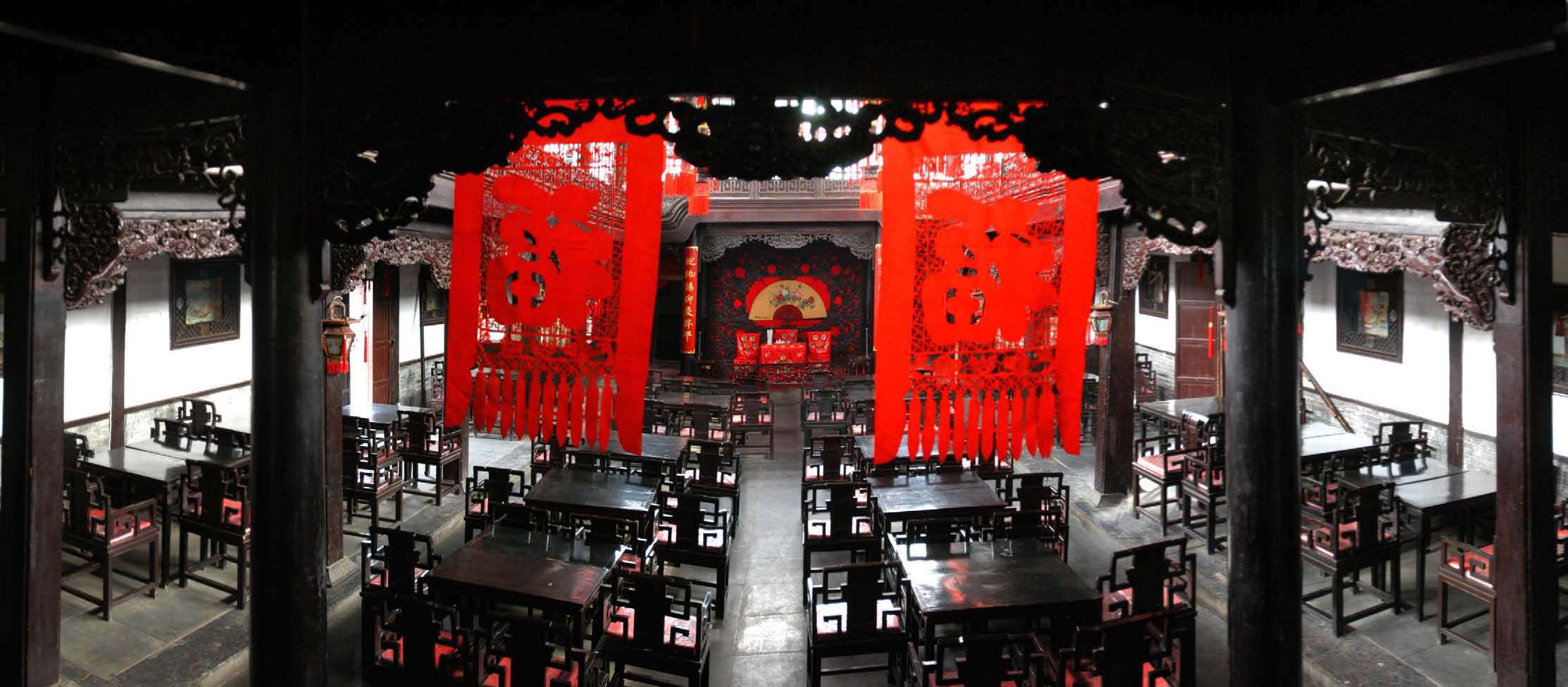 ▲石家大院戏楼。色彩对比是该画面的出彩之处,摄影师抓住艳丽的红色将古戏台的沉寂打破,又用对称构图来表现古戏台的结构特征,让画面在活泼之间又透露着庄重之美。拍摄戏楼要注意:二楼永远比一楼效果好