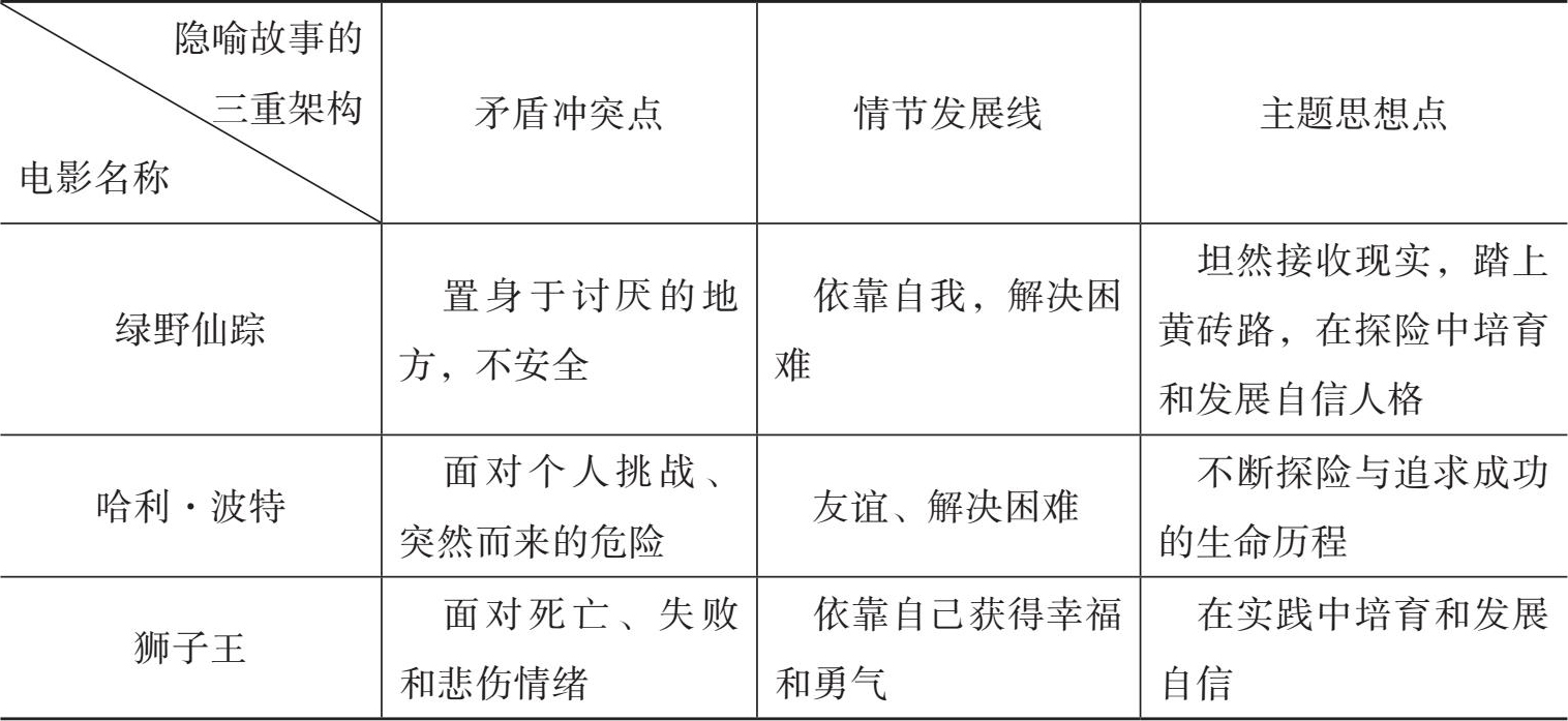 我国作文教育理论家曾曦在谈记叙文的构成元素时指出,记叙文的构成分为有形和无形两个部分,有形部分包括故事的时间、地点、人物、起因、经过、结局,无形部分包括故事的主题思想点、矛盾冲突点、情节发展线。因此,我们把矛盾冲突点、情节发展线、主题思想点称做故事作文的三个关键要素。实际上,就隐喻故事的技巧来说,现实生活中的矛盾冲突点是要用隐喻来架构到象征心灵视野的隐喻故事中的,而情节发展线整合到隐喻故事里就是治疗轴线,主题思想点则往往体现了问题的解决方案。