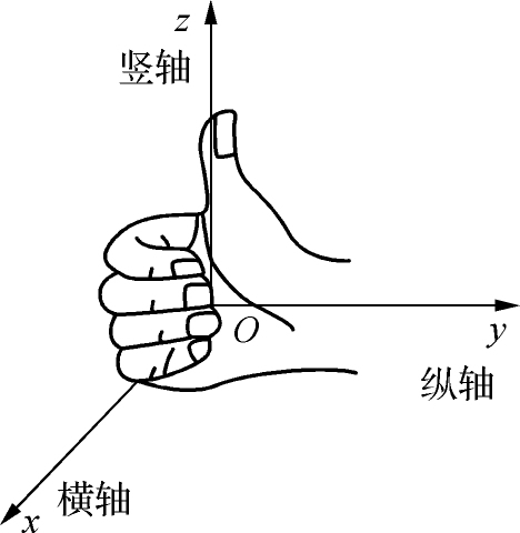 轴置于铅垂线上,各轴正向及顺序遵循右手法则,即用右手握住