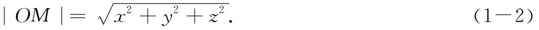 特别地,点 M ( x , y , z )与原点 O 的距离公式为
