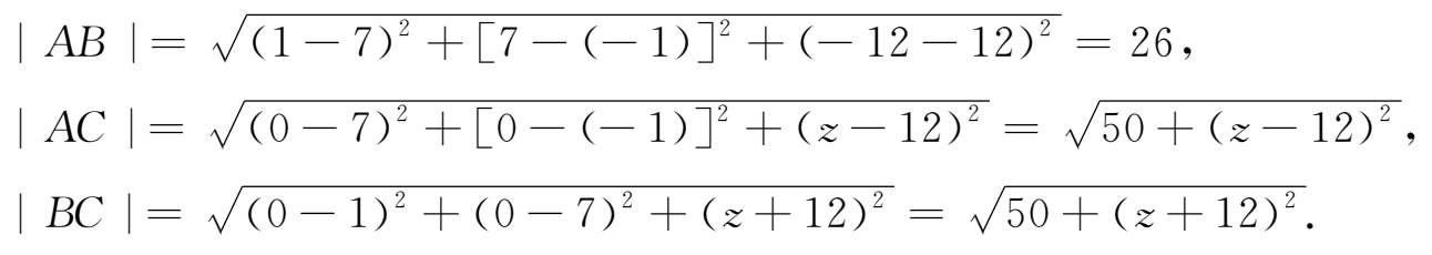 解 由题意设点 C 的坐标为(0,0, z ),由公式(1-1),得