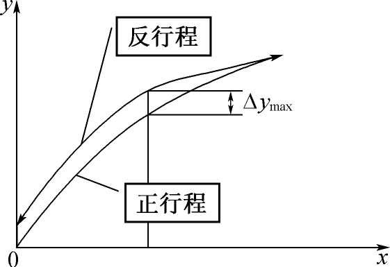 对于某一输入量,传感器在正行程时的输出量不同于其在反行程时在同一输入量下的输出量,这一现象称为迟滞,如图1-3所示。