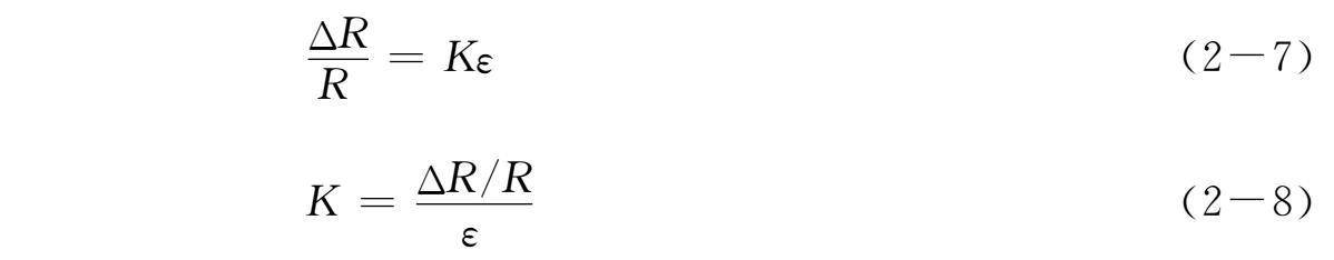 试件的应变 ε 和电阻的相对变化Δ R / R ,在理论上呈线性关系。但实际上,在大应变时,会出现非线性关系。应变计的非线性度一般要求在0.05%或1%以内。