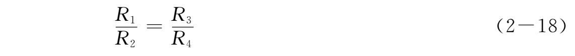 平衡时有 R 1 R 4 - R 2 R 3 =0,上式称为直流电桥平衡条件,它说明欲使电桥达到平衡,其相邻两臂的比值应相等,即