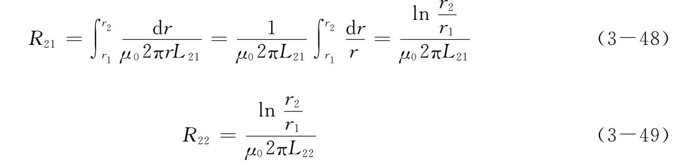 R 21 和 R 22 为同心圆环的磁阻,可由积分求得。