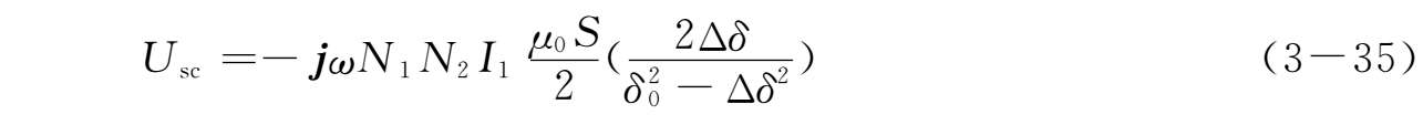 图3-8(a)所示的Π形差动变压器,当不考虑铁损、漏感且忽略铁芯和衔铁的磁阻,在次级线圈开路时有