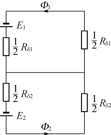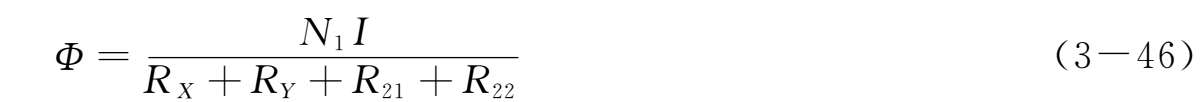由于磁路是串联的,所以 Φ 1 = Φ 2 = Φ ,则