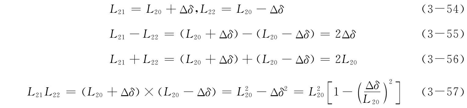 式中含有Δ δ 的2次项,这是引起非线性的因素。如果忽略Δ δ 2 项,并设 R 11 = R 12 = R 1 ,上式可改写为