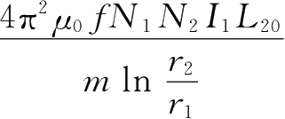 式中: Z 11 = R 11 + j ω L 11 ; Z 12 = R 12 + j ω L 12 。 R 11 、 R 12 , L 11 、 L 12 , Z 11 、 Z 12 分别表示上、下初级线圈的铜电阻、电感和复阻抗,其中