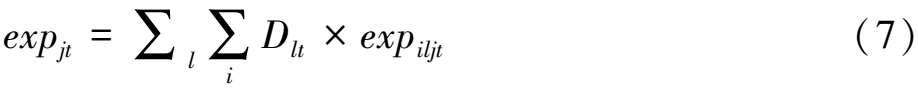 其中, exp jt 为 j 地区在 t 期用融资依存度加权的总出口; exp iljt 代表 j 地区 l 行业 i 企业在 t 期的出口额。 D lt 表示权重,当一个地区有大量企业属于融资依存度高行业时,该地区总体融资竞争效应越强,从而 exp jt 较大。