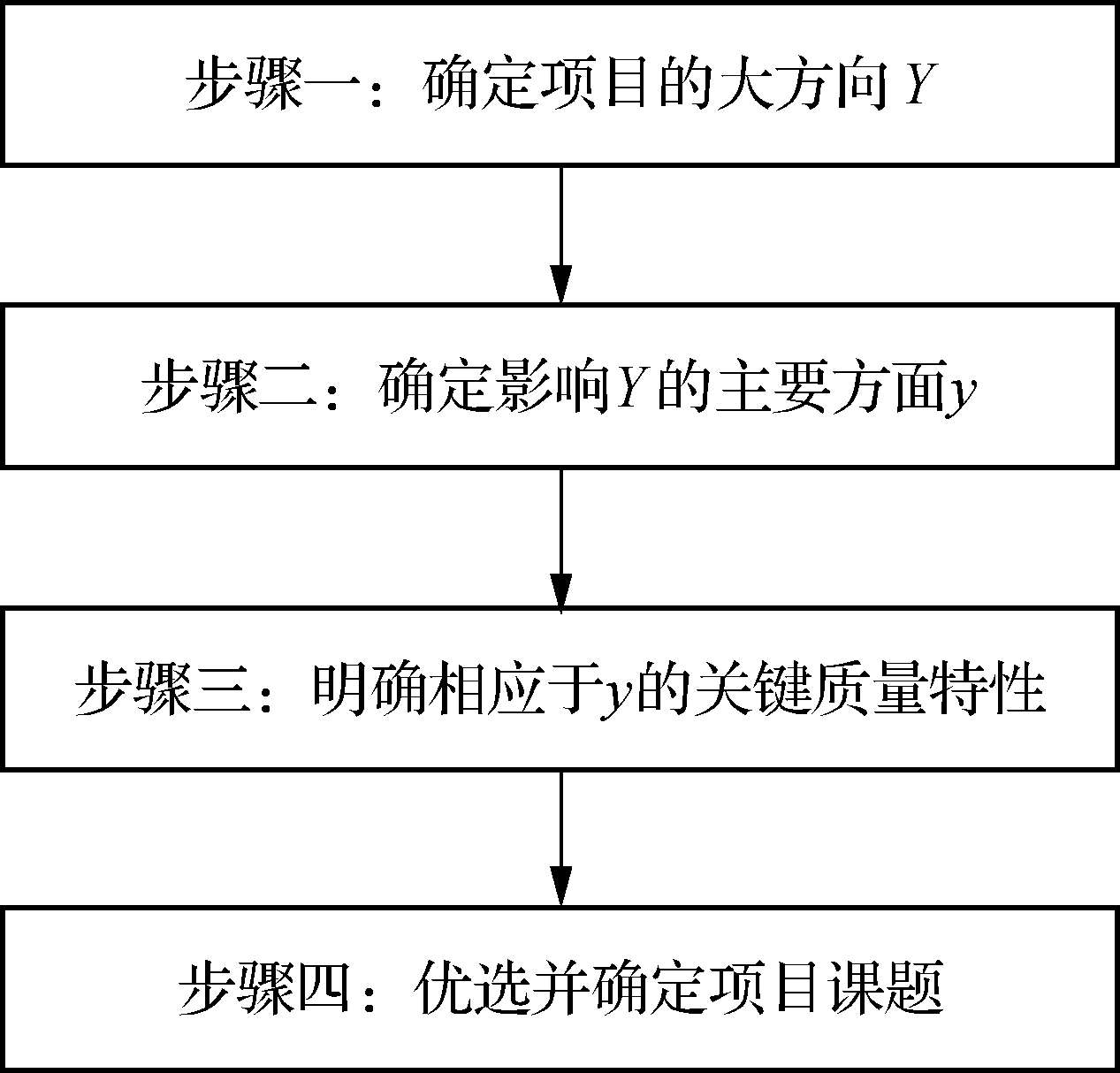 步骤四:根据CTQ确定项目课题。通过前面三个步骤,已经明确了项目的改进点( y )和在改进点( y )顾客最关心或最关注的是什么特性,在此基础上最终确定项目课题。