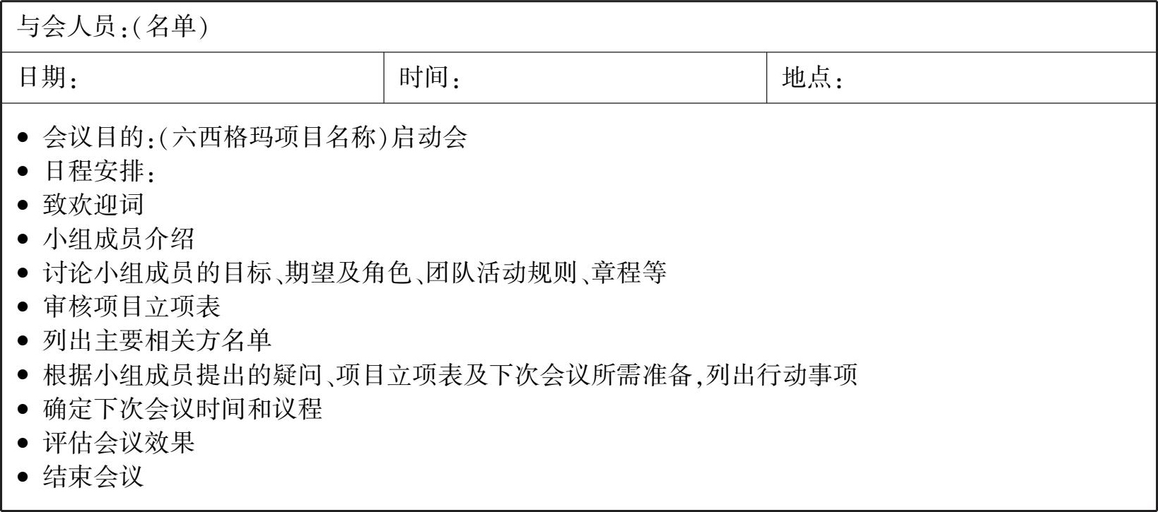 表3-3 团队领导/组长审核表:六西格玛项目团队首次会议前准备工作