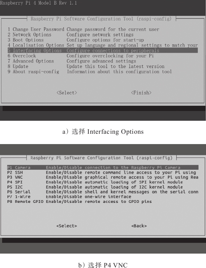 选择Interfacing Options下的P4 VNC,再选择打开就可以了,如图2-24所示。
