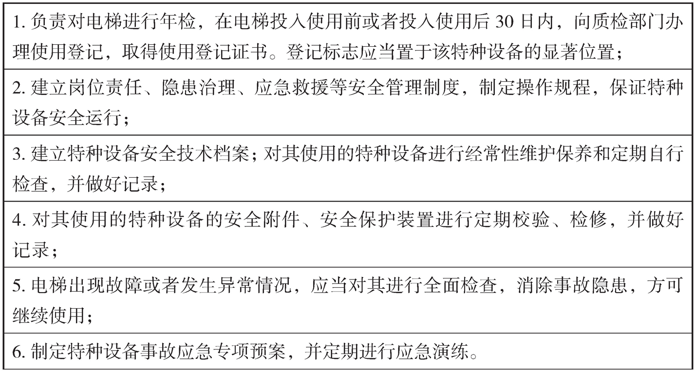 2014年1月1日起正式实施的《特种设备安全法》突出了特种设备生产、经营、使用单位的安全主体责任,明确规定:在事故多发的使用环节,使用单位对特种设备使用安全负责,并负有对特种设备的报废义务,发生事故造成损害的依法承担赔偿责任。按规定,特种设备属于共有的,共有人可以委托物业服务单位或者其他管理人管理特种设备,受托人履行本法规定的特种设备使用单位的义务,承担相应责任。可见,物业公司承接小区管理项目时,本身即为电梯的使用单位,履行电梯的使用单位义务,承担电梯使用单位责任。