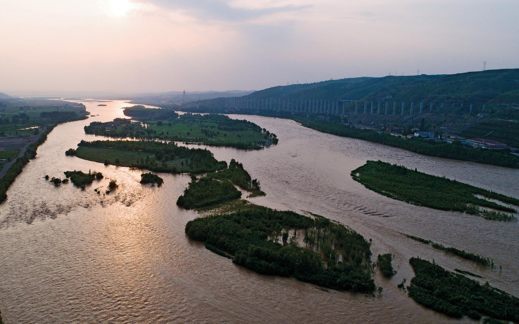 黄河流经准格尔旗段长238千米,西依鄂尔多斯高原,河东是晋北山区的偏关县和河曲县,河水混浊,波涛汹涌,两岸黄土丘壑泥沙俱下,自河口至龙门河段的泥沙量占黄河的55%。至此,黄河的东岸早已是山西省,西岸还留在内蒙古。