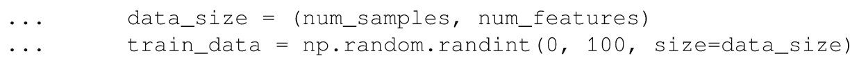 我们要创建的数据矩阵应该有num_samples行num_features列,而且矩阵中的每个元素都应该是从(0, 100)范围内随机选取的一个整数: