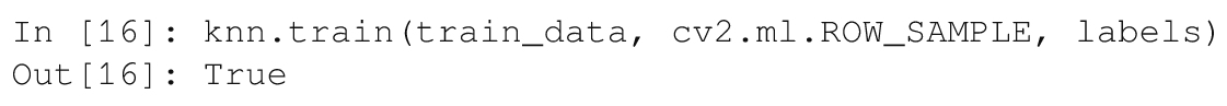 此处,我们必须让knn知道我们的数据是一个N×2的数组(即每一行是一个数据点)。成功后,函数返回True。