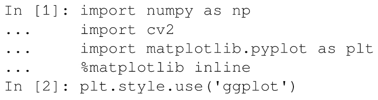 首先,我们导入所有必要的模块:OpenCV的k-NN算法模块、NumPy的数据处理模块、Matplotlib的绘图模块。如果你正在使用Jupyter Notebook,请不要忘记调用%matplotlib inline魔术命令: