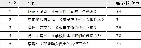看一看TED演讲:肖恩·安克尔的《改善工作的快乐之道》(http://www.ted.com/talks/shawn_achor_the_happy_secret_to_better_work?language=en)。这是我个人最爱,此外肯·罗宾逊也在好故事、好段子方面做出了很好的示范。用评分系统计算一下,感受整个过程,算出每分钟的笑声。注意他的开场故事,这部分在整篇演讲中占据了20%的时间。
