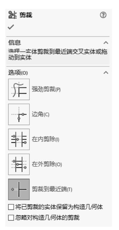 (3)在“剪裁”属性管理器中选择“剪裁到最近端”选项。