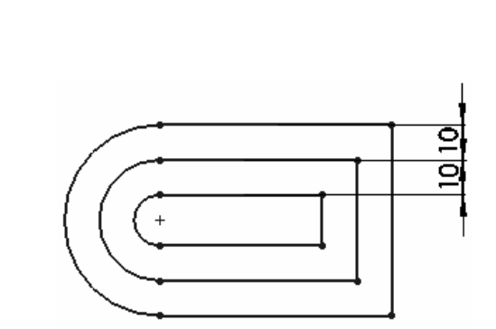 如图2-52所示为按照如图2-51所示的“等距实体”属性管理器进行设置后,选取中间草图实体中任意一部分后得到的图形。