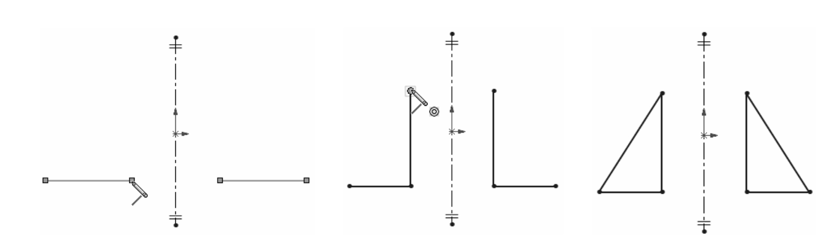 ,在中心线的一侧绘制草图实体,此时另一侧会动态地镜向出绘制的草图实体。