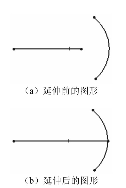 以如图 2-57 所示为例说明延伸实体的过程,图 2-57(a)为延伸前的图形,图2-57(b)为延伸后的图形。操作步骤如下。