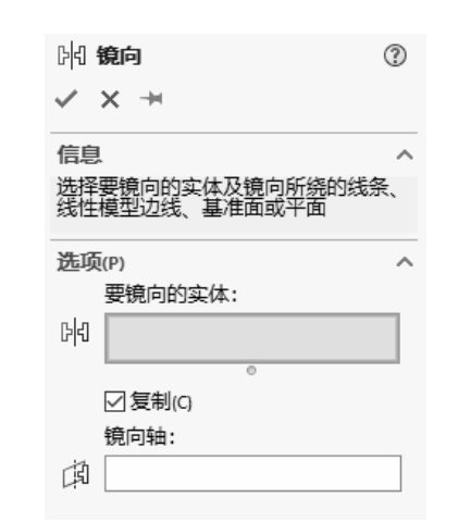 在绘制草图时,经常要绘制对称的图形,这时可以使用“镜向实体”命令来实现,“镜向”属性管理器如图2-59所示。