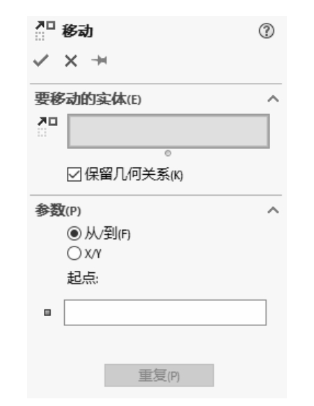 移动实体,是指将一个或者多个草图实体进行移动。执行该命令时,系统弹出的“移动”属性管理器如图2-66所示。