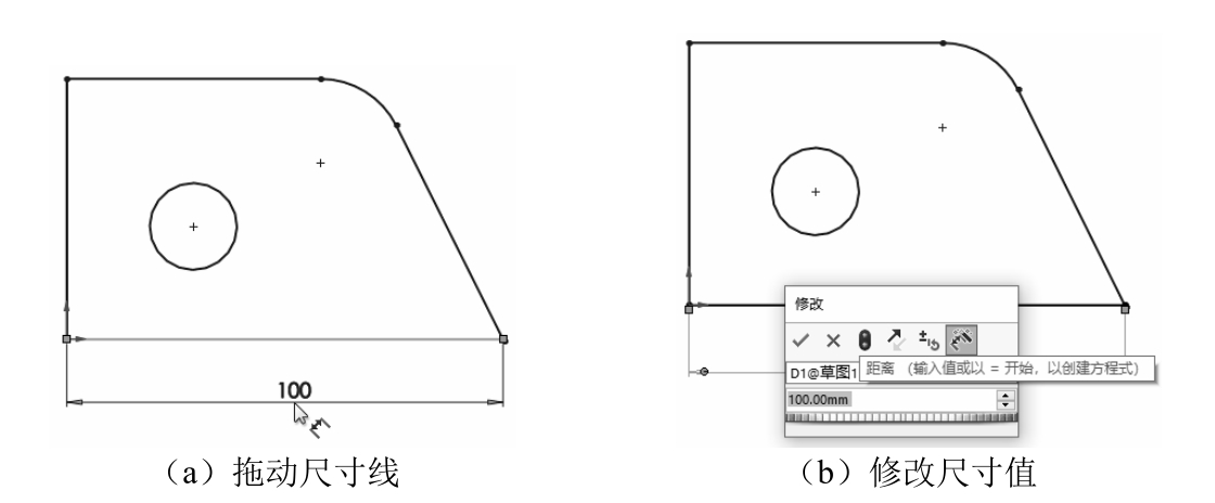 (8)如果没有勾选“输入尺寸值”复选框,则需要双击尺寸值,打开“修改”对话框对尺寸进行修改。