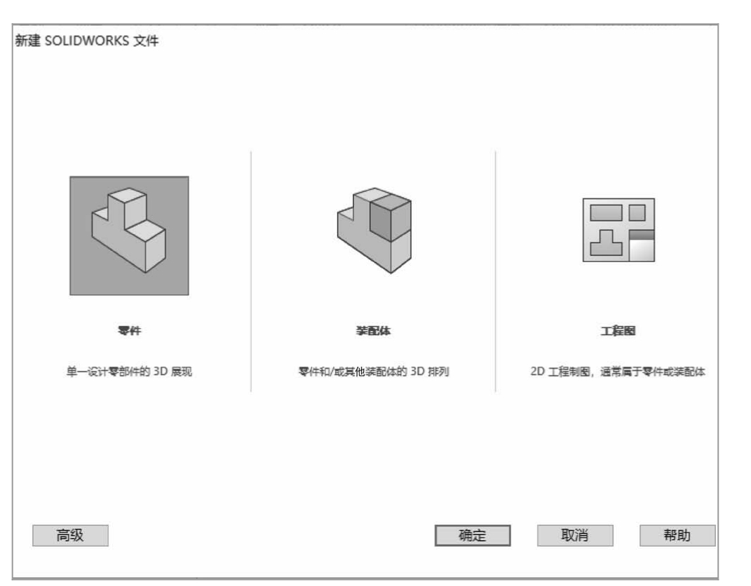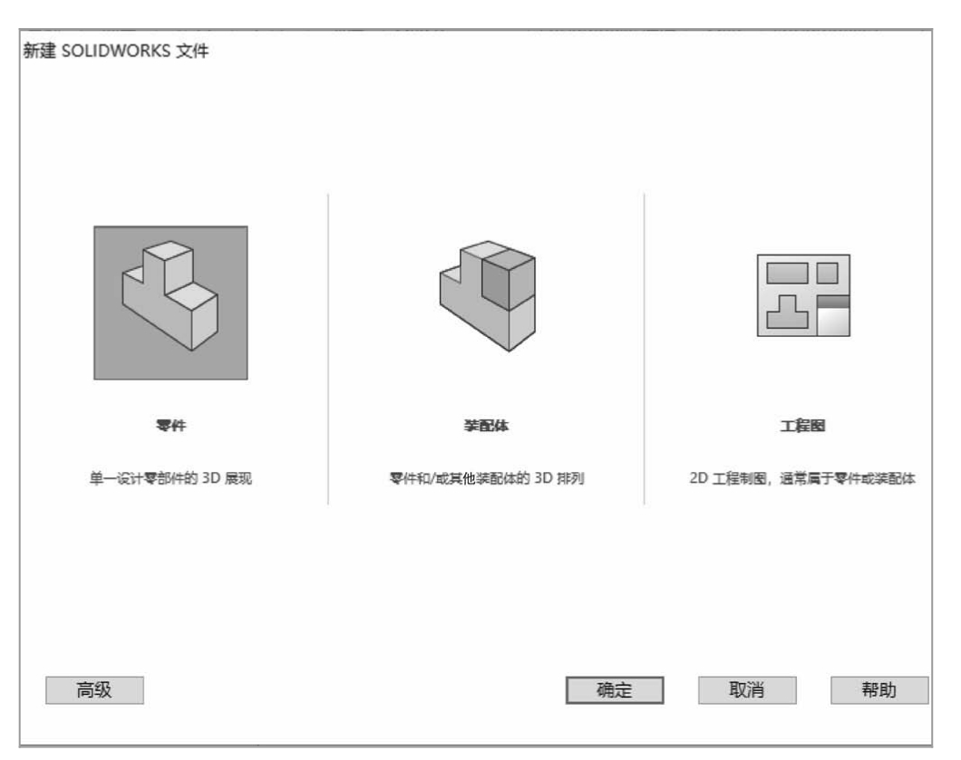 ,在弹出的如图2-84所示的“新建 SOLIDWORKS 文件”对话框中单击“零件”按钮