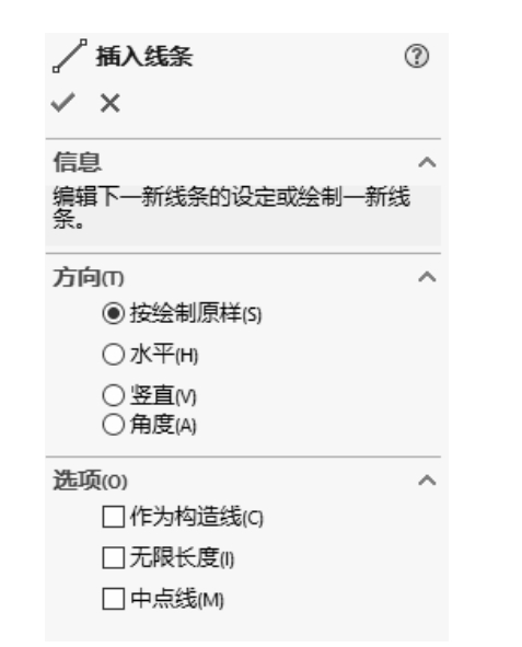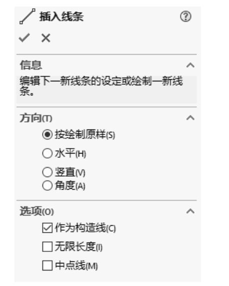 ,弹出“插入线条”属性管理器,如图2-85所示。单击“确定”按钮