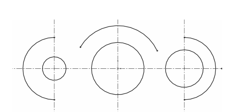 ④ 绘制圆弧。单击“草图”选项卡中的“圆心/起/终点画弧”按钮