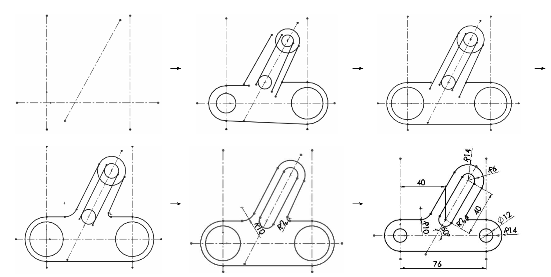 图2-105 压盖草图的绘制流程