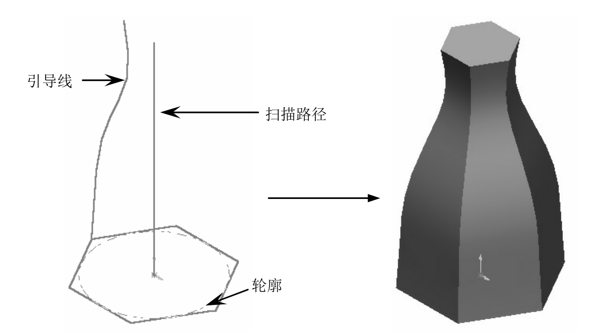 SolidWorks 2020不仅可以生成等截面的扫描,还可以生成随着路径变化截面而发生变化的扫描—引导线扫描。如图3-94所示展示了引导线扫描效果。