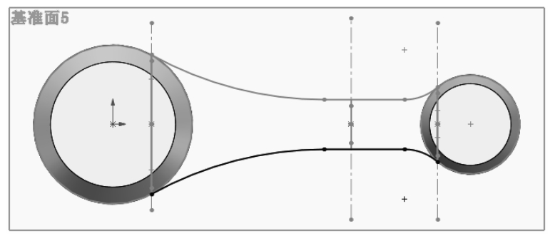 (35)绘制第三条引导线。选择基准面5,单击“草图”选项卡上的“草图绘制”按钮