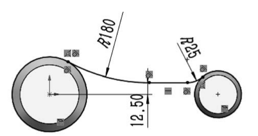 ,选择图3-127中圆弧的左端点与图3-135中圆弧,添加重合几何关系,如图3-135所示。