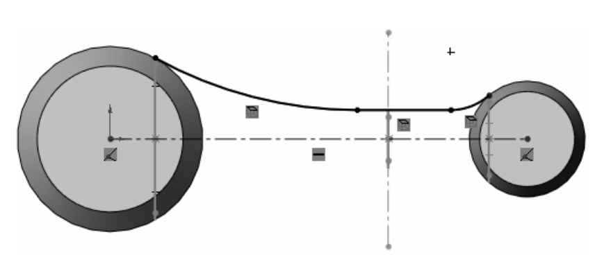 (32)镜向引导线。按住<Ctrl>键,选择直线、圆弧和中心线,单击“草图”选项卡上的“镜向实体”按钮