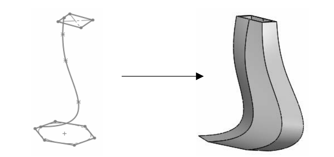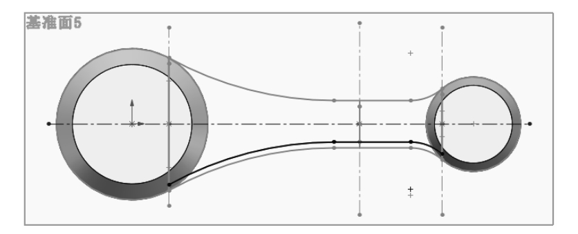 利用分割线放样不仅可以生成普通的放样特征,还可以生成引导线或中心线放样特征。它们的操作步骤基本一样,这里不再赘述。