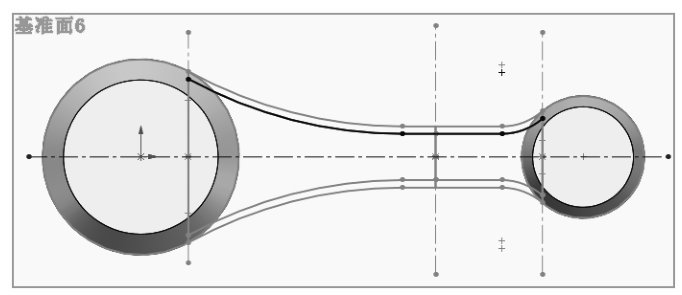 (2)绘制连杆大端拉伸特征草图。在FeatureManager设计树中选择“上视基准面”作为草图绘制基准面,单击“草图”选项卡上的“草图绘制”按钮